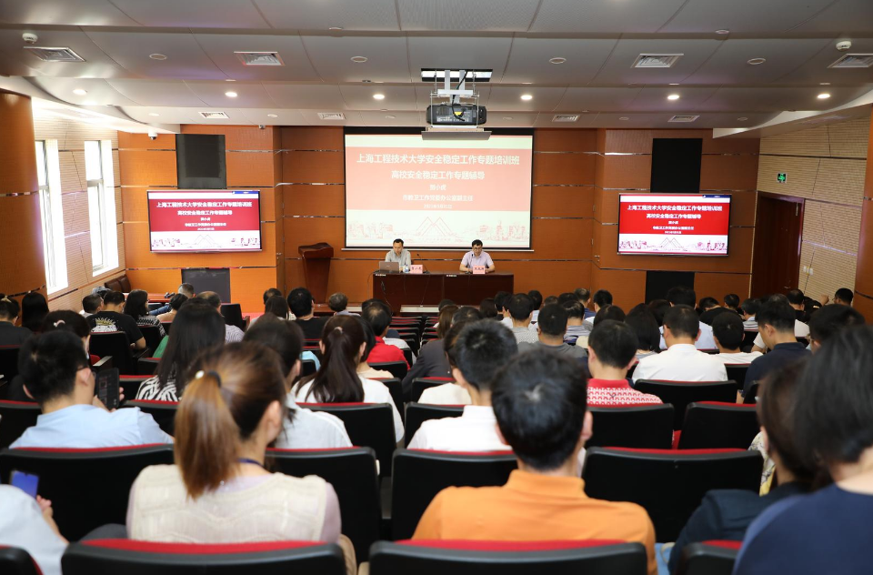 5月31日下午,学校安全稳定工作专题培训班主题报告在航飞楼一楼报告厅举行,上海市教卫工作党委办公室副主任贺小虎应邀作了《总体国家安全观视野下的高校风险防范与意识形态安全工作》的主题报告。学校安全稳定工作组成员,各二级党组织书记、副书记,各学院党政办主任、学办主任、安全员、辅导员代表以及部门秘书参加了培训会,会议由党委办公室副主任王成涛主持。