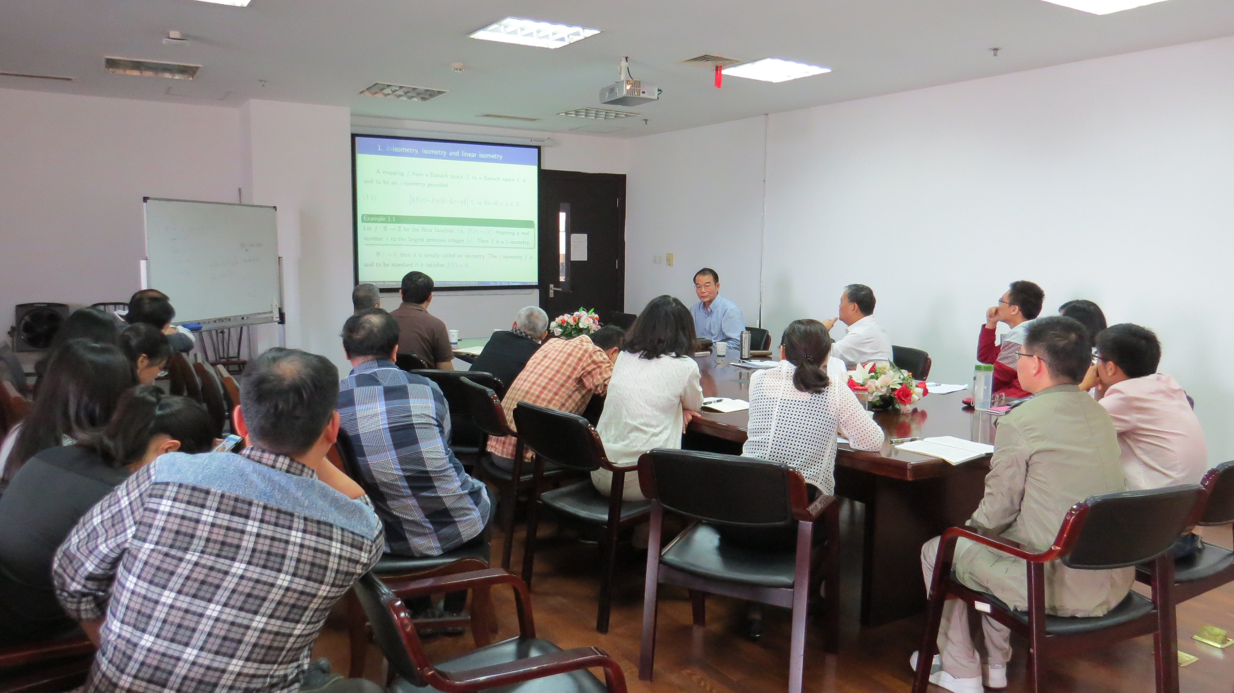 10月23日上午,来自厦门大学的程立新教授在行政楼1308会议室,以 “A universal theorem for stability ofε-Isometries”为题,给基础教学学院教师作了一场精彩的学术报告,电子电气工程学院和管理学院部分教师以及上海大学部分研究生参会。报告会由基础教学学院张子厚老师主持。
