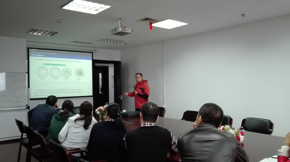报告会上,卢剑权教授介绍了其科研团队近年来关于多智能体系统一致性问题的一系列成果。成果多数发表在Automatica、IEEE Trans. Automatic Control等顶级期刊上。与会老师向卢教授请教了一些相关问题,卢教授讲解耐心、细致,进行了愉快、深入的交流,老师们受益匪浅。