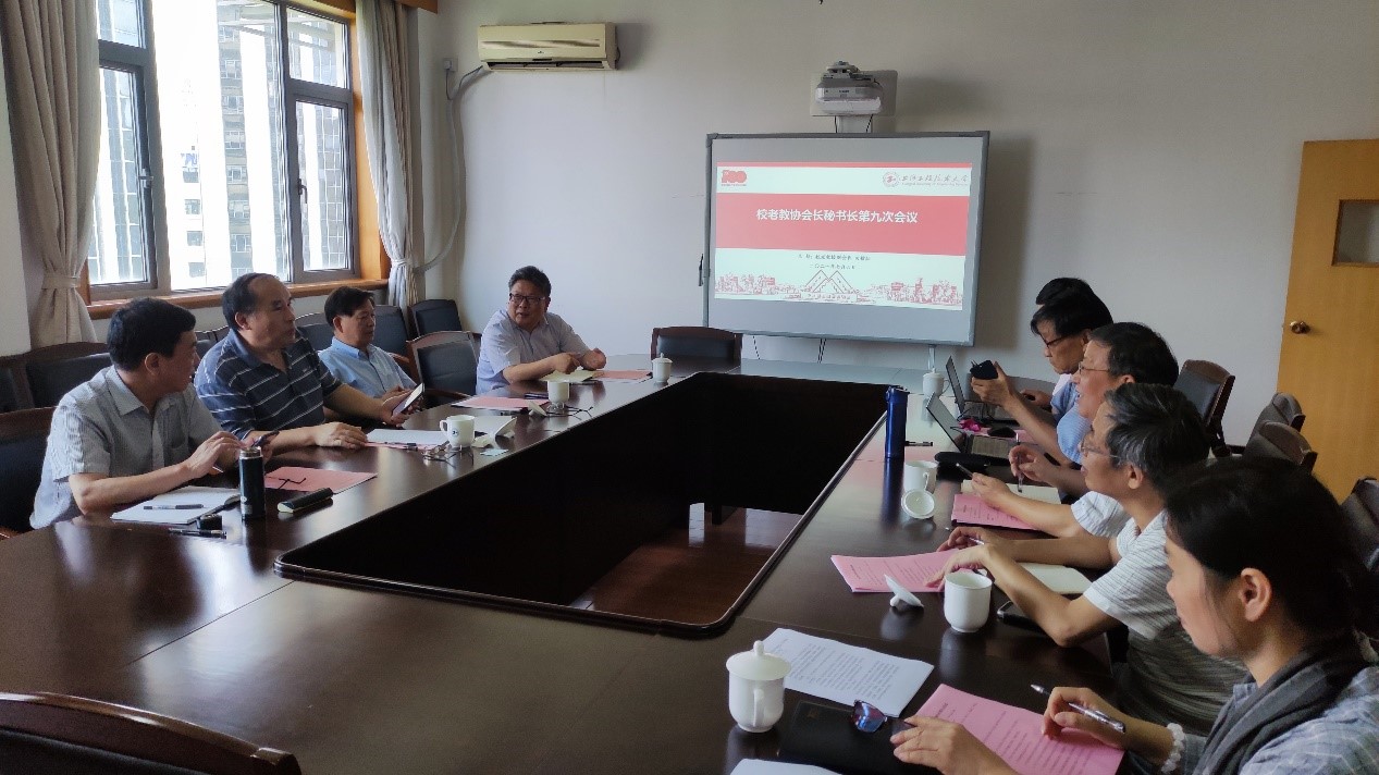 7月6日上午,校老教授协会在长宁校区召开会长、秘书长第九次会议。校老教授协会会长夏斯云,副会长田信灿、陈力华,离退休党工委书记孙文钧,校老教授协会秘书长林兰天、副秘书长张健明、刘牧众、陈月辉等老师出席了本次会议。会议由田信灿副会长主持。