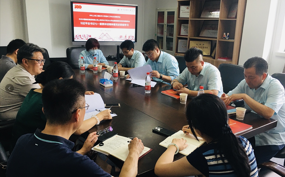 7月7日下午,仙霞路邮政支局党支部书记、支局长华擎宇等一行来我校长宁校区,与退休工作处党支部一起开展学习习近平总书记七一重要讲话精神暨党史联组学习。