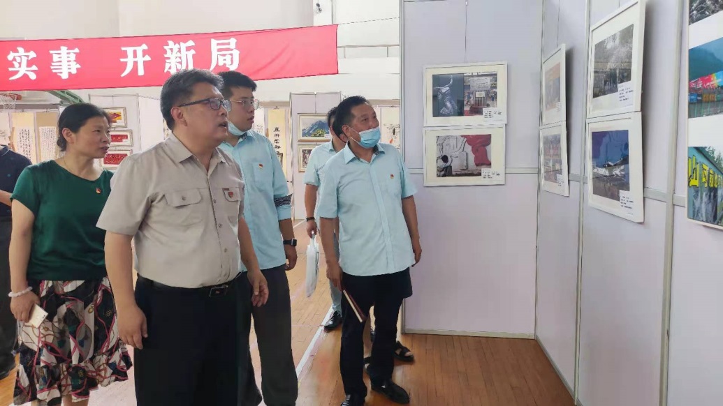 随后仙霞邮政支局支部来到综合楼篮球馆,参观了正在进行的“盛赞百年辉煌”离退休教职工庆祝建党100周年程园艺术作品展,一百多幅书画、摄影、编制作品,均出自学校退休教职工之手,作品内容丰富、题材广泛、格调高雅,每幅作品都与建党百年息息相关,都是党史文化的传承,充分体现了我校离退休教职工多才多艺的艺术风采和对党的深厚感情。孙文钧和张漪老师陪同介绍了本次艺术作品展“盛赞百年辉煌”的主题,每幅作品所表达的内容及作者基本情况,并赠送本次程园艺术作品展的专题画册,两个支部合影留念。