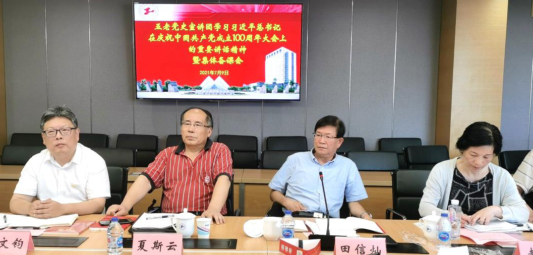 7月9日上午,为深入学习贯彻习近平总书记在庆祝中国共产党成立100周年大会的重要讲话精神,结合党史学习,五老党史宣讲团集体备课会在长宁校区科创楼725会议室召开。五老党史宣讲团团长夏斯云、校关工委副主任田信灿、离退休党工委书记孙文钧、老干办常务副主任赵雷、五老党史宣讲团成员参加了会议。本次会议由校关工委副主任田信灿主持。