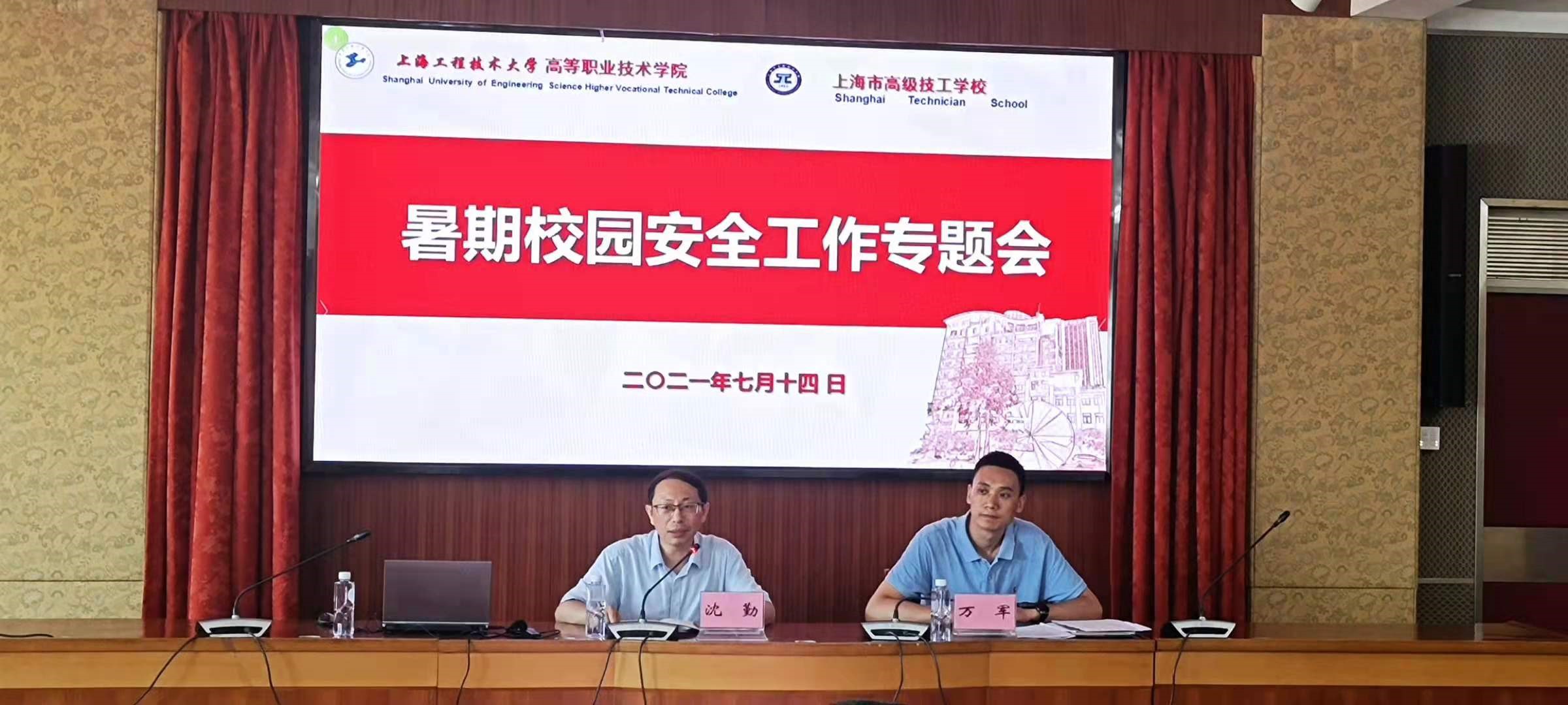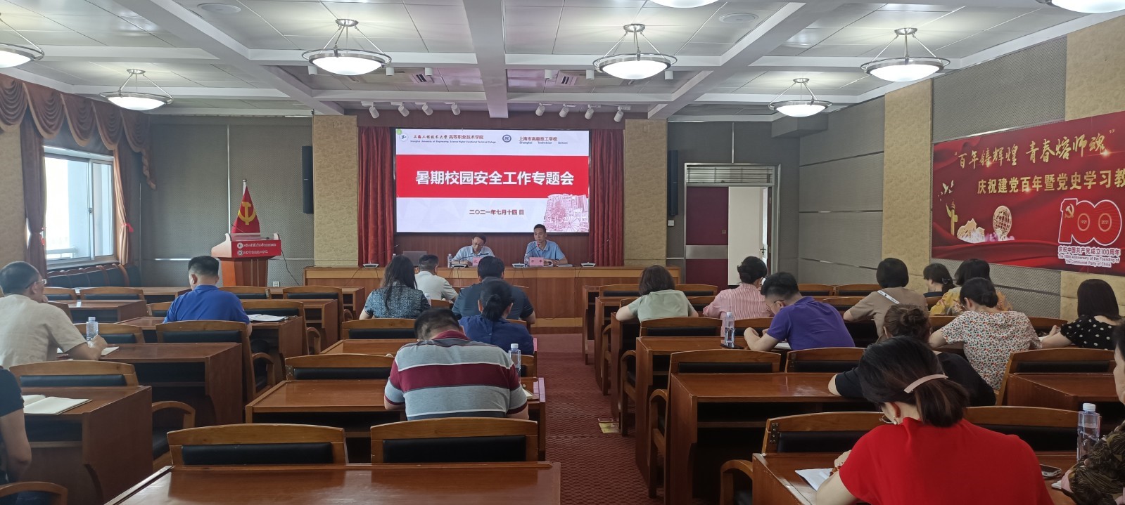 7月14日下午,高职学院、高级技校在综合楼9楼报告厅召开2021年暑期校园安全工作专题会议。沈勤院长、万军副院长、各部门党政负责人及学生支部书记参加会议。会议由院、校长沈勤主持。