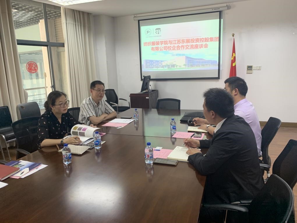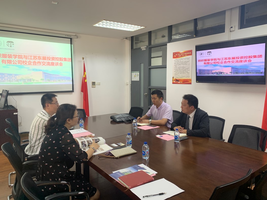 7月12日上午,江苏东展投资控股集团有限公司人事行政总监李朝阳、人事副经理汤志华一行来访纺织服装学院洽谈校企合作。纺织服装学院党委副书记谢志霞、副院长辛斌杰以及就业辅导员任凡参加交流。