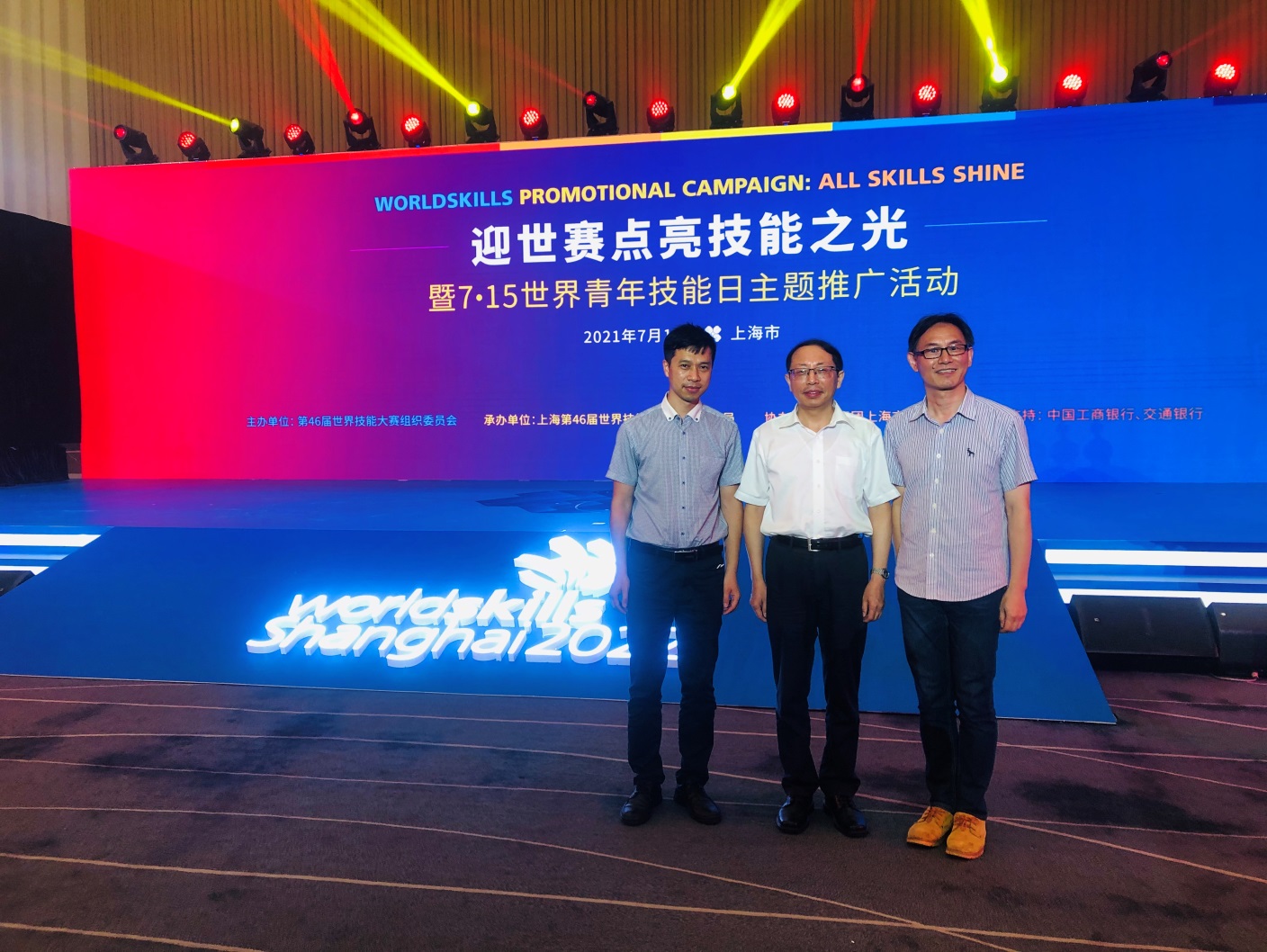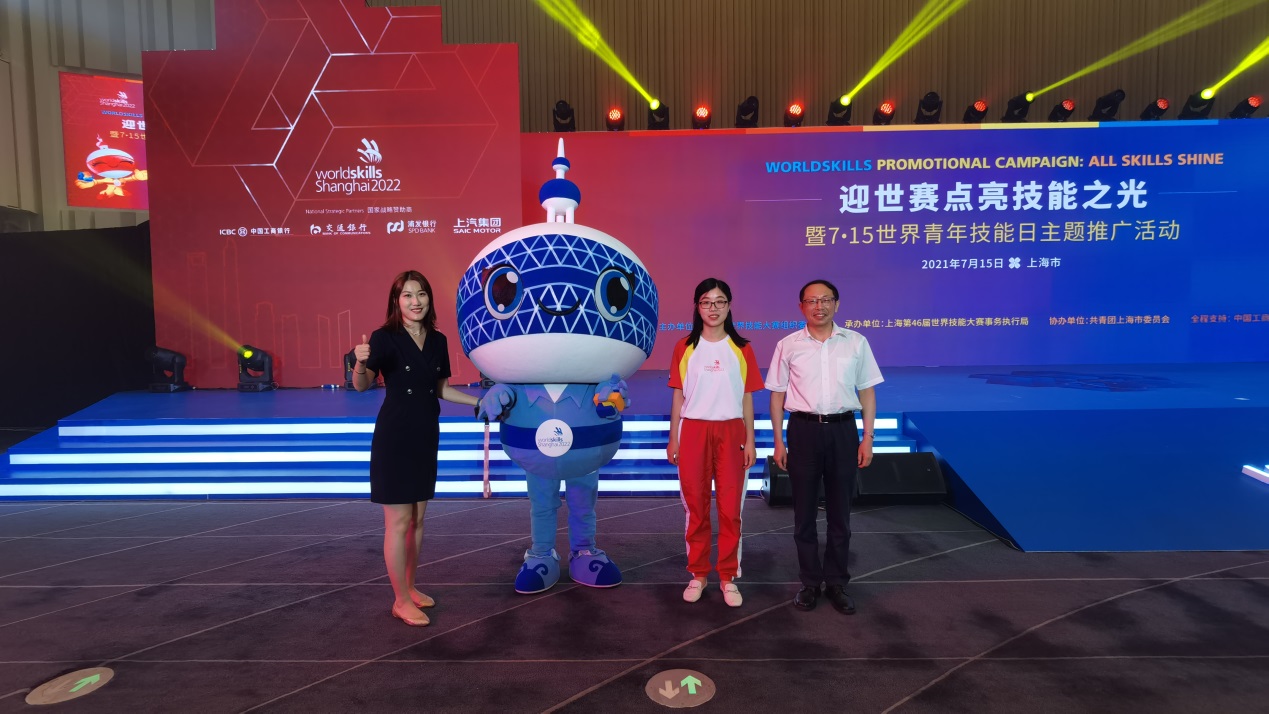 应上海第46届世界技能大赛事务执行局邀请,我校高职学院沈勤和世赛(上海)研究中心徐滕岗和史志军参加“迎世赛 点亮技能之光”暨7·15世界青年技能日主题推广活动。高职学院刘俊、丁轩浩同学参加宣誓;王诗诗、张文蔚老师获聘场地经理;王朴老师参加世赛主题曲《相约上海》演唱。