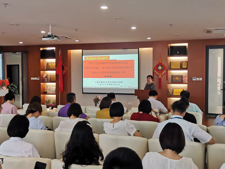 为深入推进党史学习教育,7月16日上午航空运输学院党委中心组在航飞楼6429举行专题学习会,特邀马克思主义学院硕士生导师杨莲秀副教授作学习习近平总书记在庆祝中国共产党成立100周年大会上的重要讲话精神、《习近平新时代中国特色社会主义思想学习问答》专题辅导报告。学院党委中心组成员,全体教师党员参会,会议由学院党委副书记戴振华主持,马克思主义学院张烨老师参加学习。