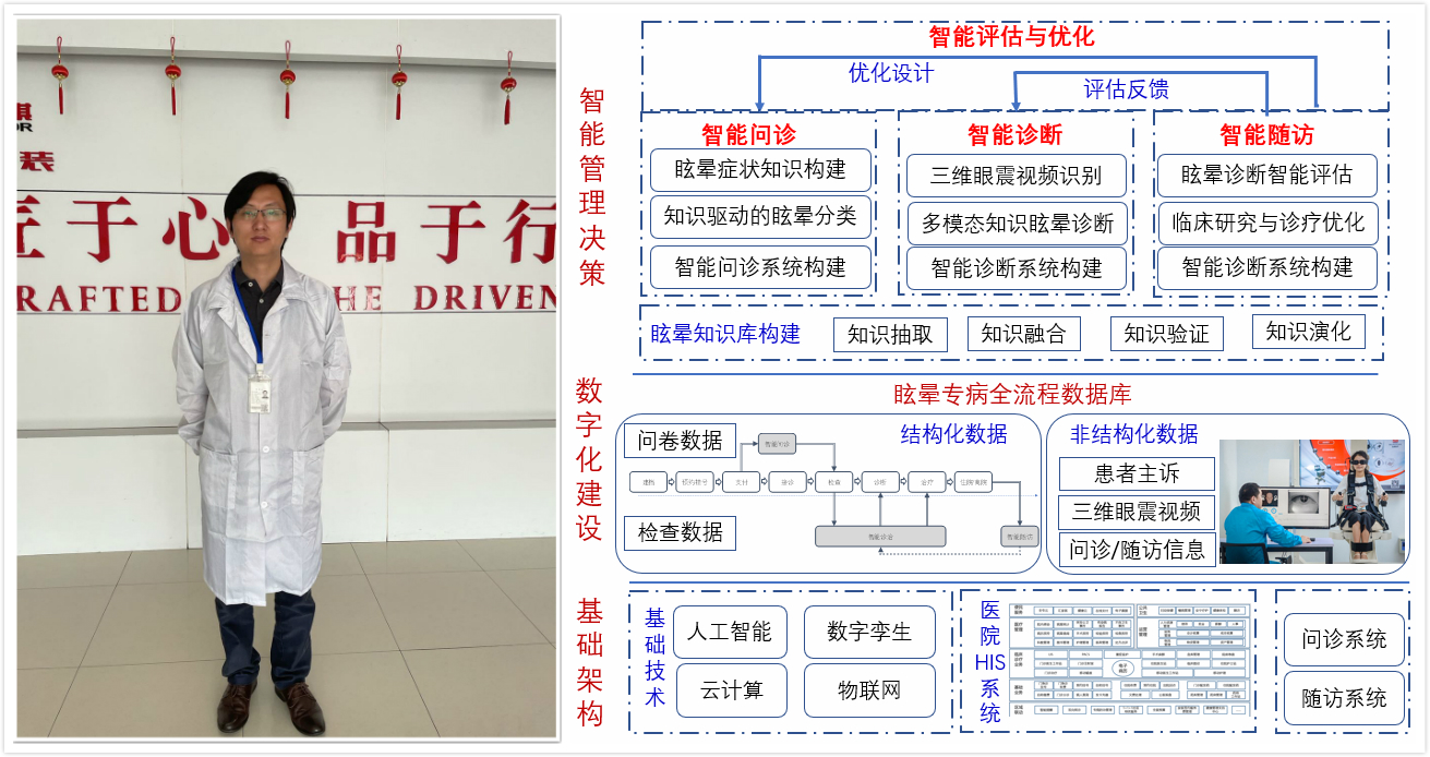 该项目拟建立眩晕专病的全流程数字化诊疗平台,旨在通过数字化建设手段,实时高效地采集眩晕患者入院前的问诊数据、院内的全方位检查数据、出院后的随访数据全流程专病数据库;基于全流程数字化诊疗平台,构建多模态融合的眩晕辅助诊断模型,通过视频三维眼震、患者主诉以及院内检测数据、入院前的问诊信息等多模态数据特征提取与融合,实现眩晕的精准辅助诊断;融合患者出院后的随访数据,提升辅助诊断的准确性,优化患者入院前的问诊系统设计,实现患者的个性化诊治。