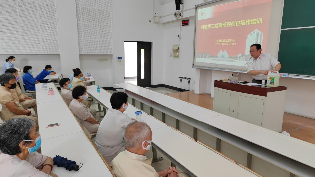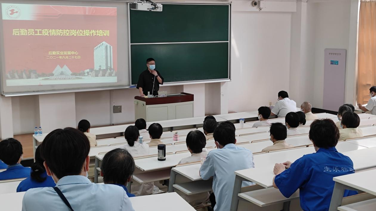 为确保学校后勤疫情防控工作各项要求严格落实到位,为开学等工作做好充分准备,8月27日,后勤实业发展中心在教学楼A315开展了员工疫情防控岗位操作培训会,后勤中心主任王佳杰,校园物业、学生公寓现场负责人,各条线领班、主管、保洁组长等参加了此次培训。
