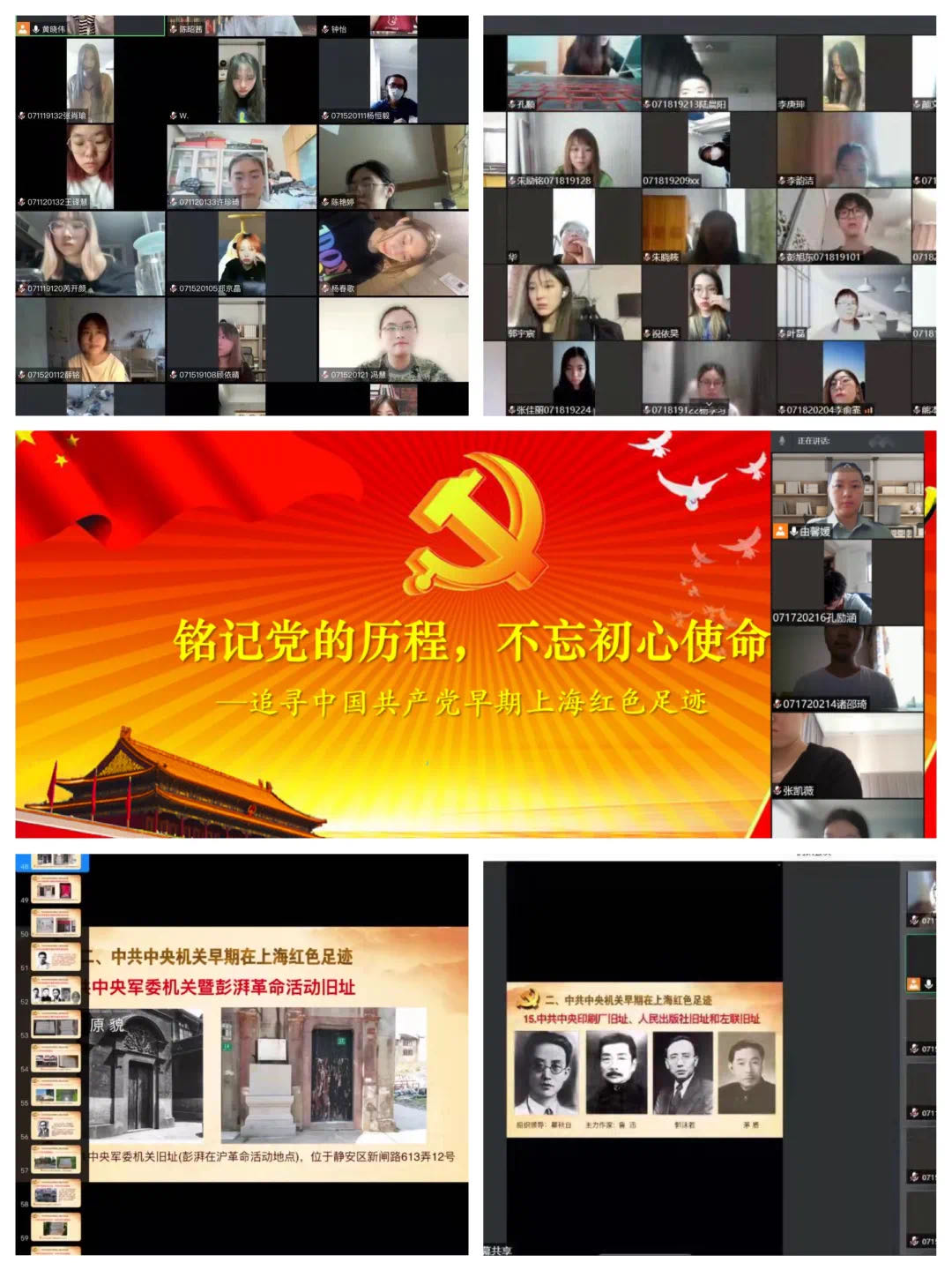 9月5日,艺术设计学院在学校的统一领导下,开展了“铭记党的历程,不忘初心使命”主题党团活动。在活动中,带训老师们带领同学们扎根上海红色足迹,深刻学习革命先烈们的英雄事迹。而后,老师们代领同学学习了习近平总书记“七一”重要讲话精神,强调了艺设学子们要坚定信心,振奋精神,通过自己的专业特长来收好“红色根脉”,发挥创新实践精神,不断提升塑造变革能力。在本次线上军训的背景之下,通过本次党团活动,帮助同学们很好的认识到了作为当代大学生要如何面向未来、面对挑战。在全国上下抗击疫情的热潮中,进一步增加了艺设学子的凝聚力,充分发挥战斗堡垒作用。