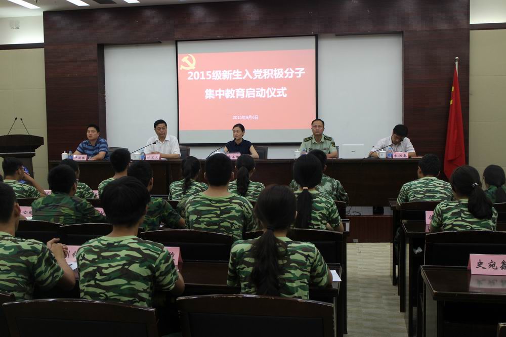 校党委副书记兼副校长裴小倩做了讲话。她指出,首次在军训期间举行入党积极分子集中教育体现了校党委对2015级新生入党积极分子的关心和爱护。她肯定了同学们积极向上的饱满精神状态,并对后期集中教育提出了几点要求。她要求同学们珍惜入党积极分子的身份和学习的机会,不辜负党组织的培养,积极投入地完成集中学习的任务,在上党课、学党史、谈体会的过程中自觉加深对党的认识和理解,不断坚定理想信念。她希望同学们努力成为同学中思想政治上的先锋,专业学习上的表率,引领示范中的榜样,班团建设和社会实践中的骨干,成为影响更多同学共同进步的带动者和排头兵和先锋群体。尤其在军训期间要带头发扬不怕苦、不怕累、不怕太阳晒黑的精神,圆满完成军训的任务,展现 “入党积极分子”的精神风貌。