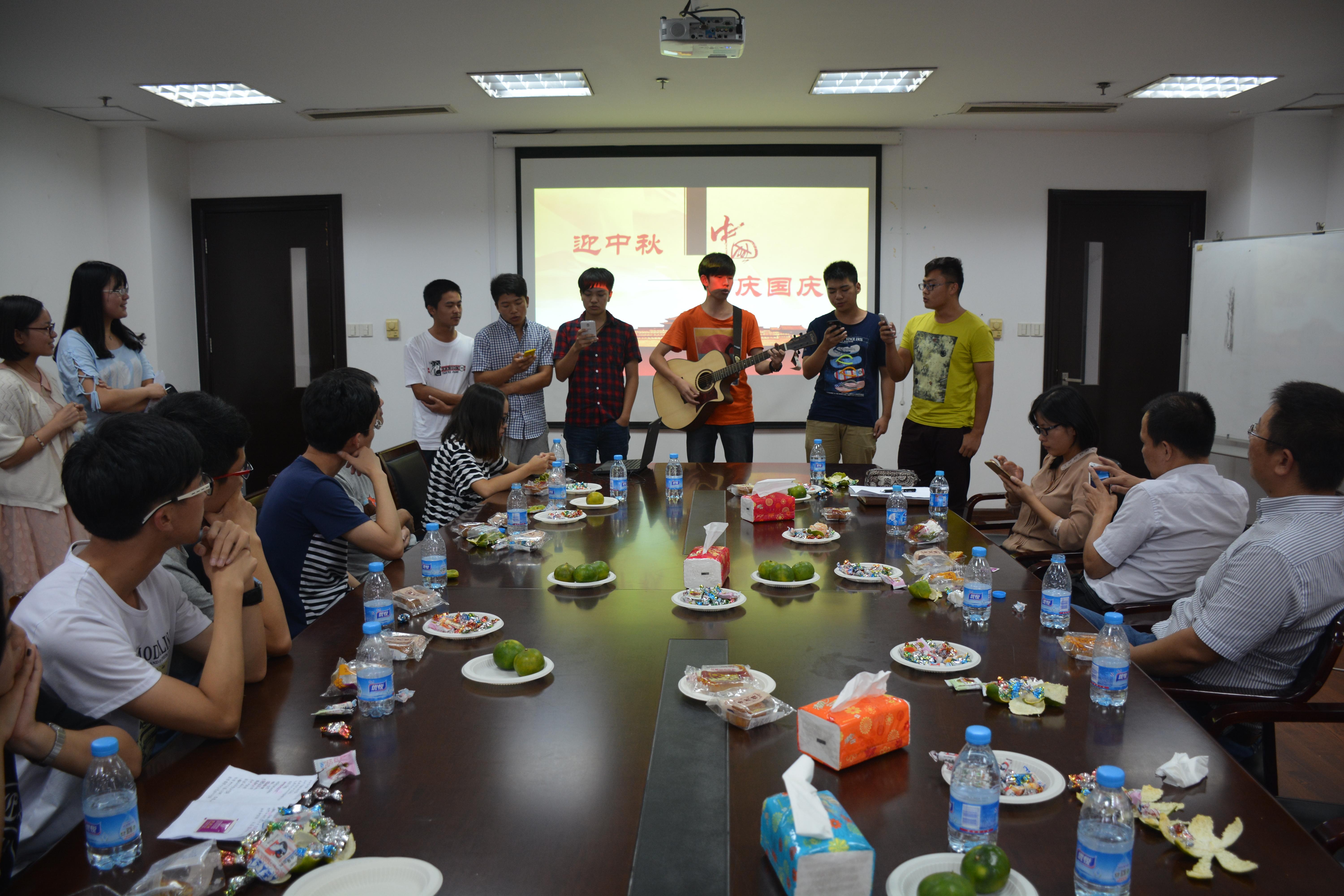 新生们载歌载舞,由新生带来的才艺展示热情四射,惊艳全场。经典歌曲《老男孩》伴随着吉它声表达理想自由豪迈至极,柔和深情的《明年今日》,极具传统而又不失时尚的“快板说唱”,以及极富乐趣和文化的“猜字游戏”,由此掀起一阵阵热潮。此次活动,不仅使同学们在彼此了解中度过一个温馨而愉快的团圆节,更激扬起他们青春奋进的热情。