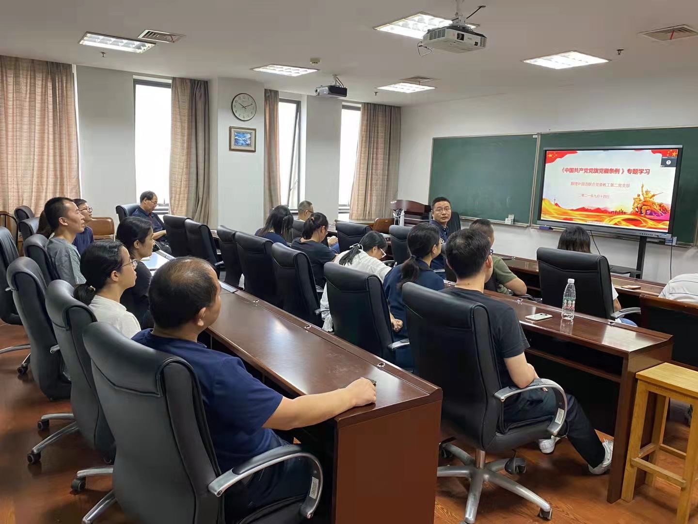 9月3日至14日,数理外国语联合党委及七个党支部积极开展《中国共产党党徽党旗条例》学习。9月14日,联合党委通过党委会第一议题方式学习了《条例》,进一步明确党委委员对执行《条例》的监督职责。各党支部通过线下线上结合的方式开展组织生活专题学习,深刻学习理解《条例》制定的背景和意义、《条例》制定遵循主要原则和《条例》制定的亮点,对《条例》中关于党徽党旗制作、使用、管理和监督等24条内容进行了详细的解读学习。