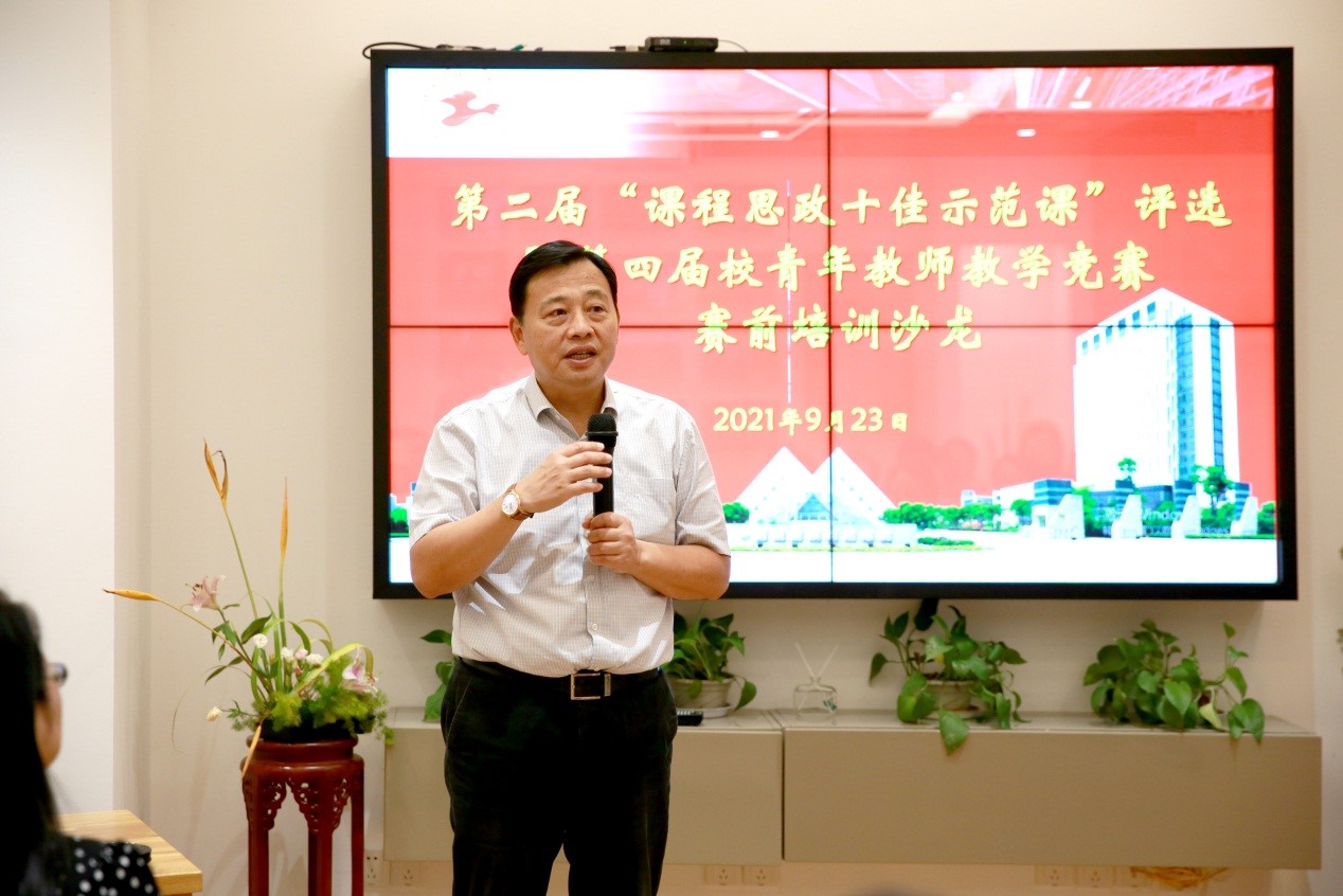 为了更好迎接第二届“课程思政十佳示范课”评选暨第四届校青年教师教学竞赛,9月23日下午,党委教师工作部、教务处、校工会在行政楼文化之家举办赛前培训沙龙,特邀我校近两年荣获上海高校青年教师教学竞赛获奖老师就教学比赛开展经验分享。校党委副书记、工会主席史健勇,校工会常务副主席李霞,党委教师工作部副部长孙守印,教务处副处长金晓怡及各学院参赛教师50余人参加。此次培训沙龙同时以视频直播方式分享以扩大受益面。培训沙龙由校工会常务副主席李霞主持。