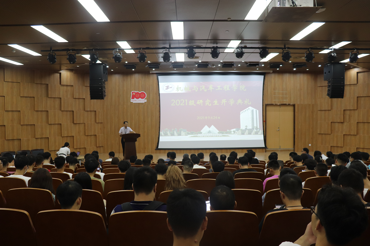 9月24日下午,机械与汽车工程学院在交通大楼一楼学术报告厅举行2021级研究生开学典礼暨入学教育。学院党政班子成员、各系室主任、各系研究生分管副主任、研究生秘书、研究生辅导员、全体2021级研究生新生出席活动。活动由副院长郭辉主持。