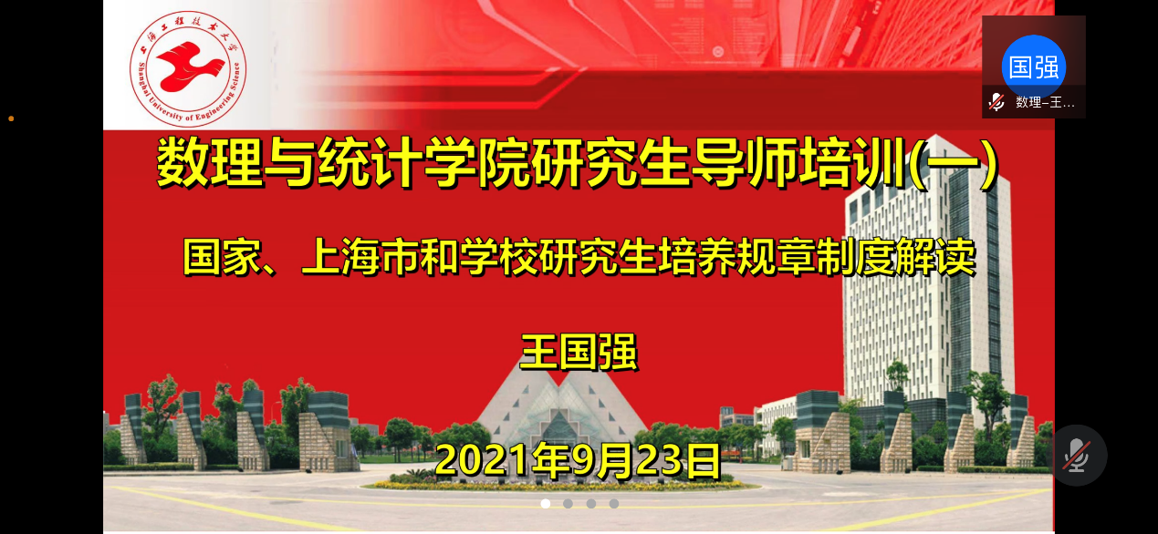 为在新形势下不断深化研究生教育综合改革,提高研究生培养质量,9月23日,数理与统计学院在线召开2021年研究生导师培训会。学院统计学一级学科以及材料物理与化学、商务统计学(自设)、应用数学与计算科学(自设)和控制理论与控制工程四个二级学科全体研究生导师参加会议。培训会由数理与统计学院副院长王国强教授主持。