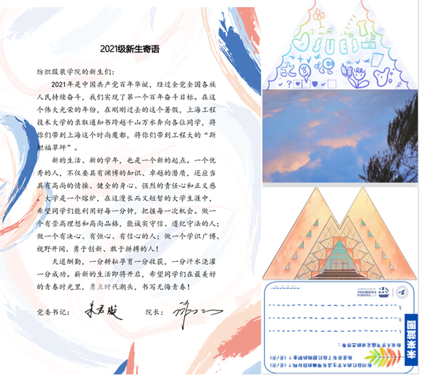 新的开始、新的起点。祝愿2021级学子们能够在纺织服装学院锻炼自我,挥洒青春。在未来的日子里,披青春霓裳,书崭新篇章!
