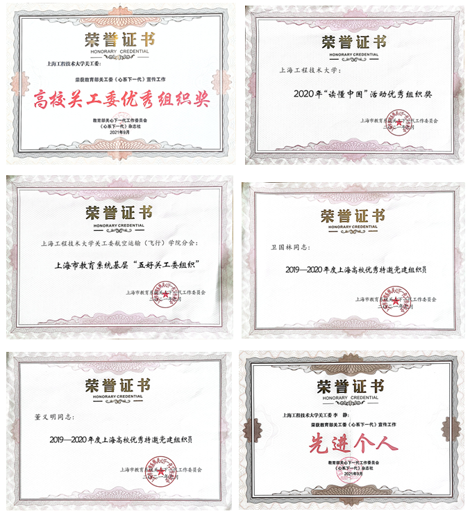 9月28日,上海市教育系统关工委对今年评选出的各类先进个人、集体奖项进行了表彰。我校关工委荣获教育部关工委《心系下一代》宣传工作“高校关工委优秀组织奖”、李静同志荣获“先进个人奖”;校关工委荣获2020年“读懂中国”活动优秀组织奖;航空运输(飞行)学院关工委获上海市教育系统基层“五好关工委组织”称号;卫国林、董义明两位同志获2019-2020年度上海市高校优秀特邀组织员称号。