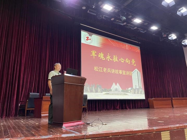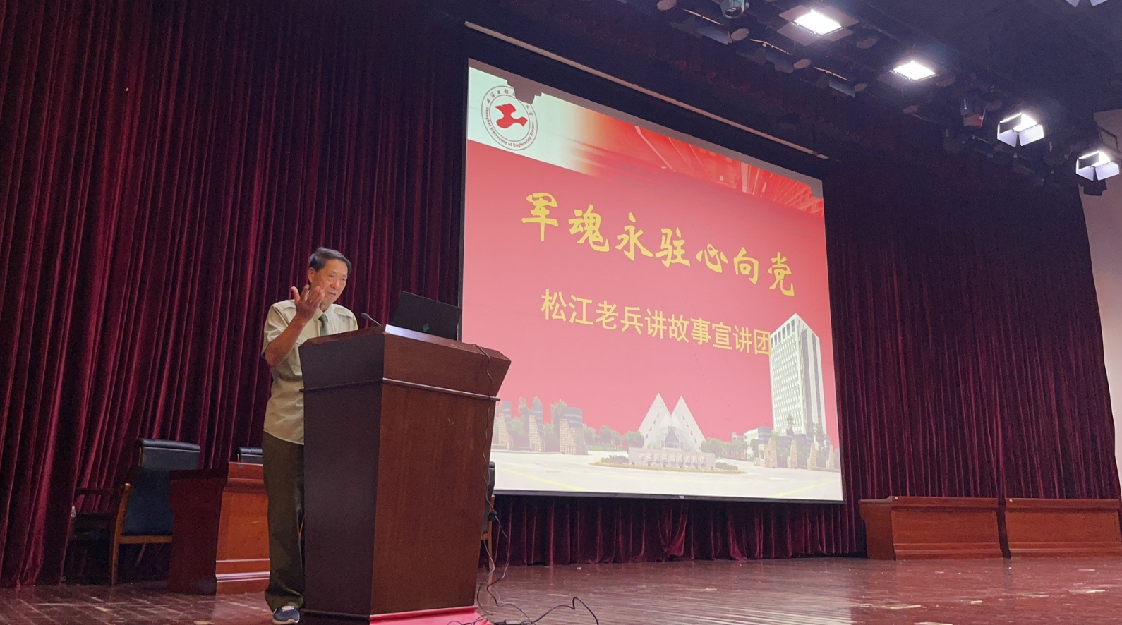 在入党启蒙教育环节,虞蓉书记以“以史为鉴,以用促学,争做合格学生党员”为主题,从学习党史,不忘初心,为梦想而努力;学习典型,示范引领,以精神为动力;学以致用,身体力行,锤炼党性坚定力三个方面向全体新生做了入党启蒙和党性教育。同时,邀请了两位松江老兵讲故事宣讲团成员结合自己的亲身经历,以“军魂永驻心向党”为主题开展了富有激情的演讲,激励同学们传承红色基因,激发了广大学子入党热情。