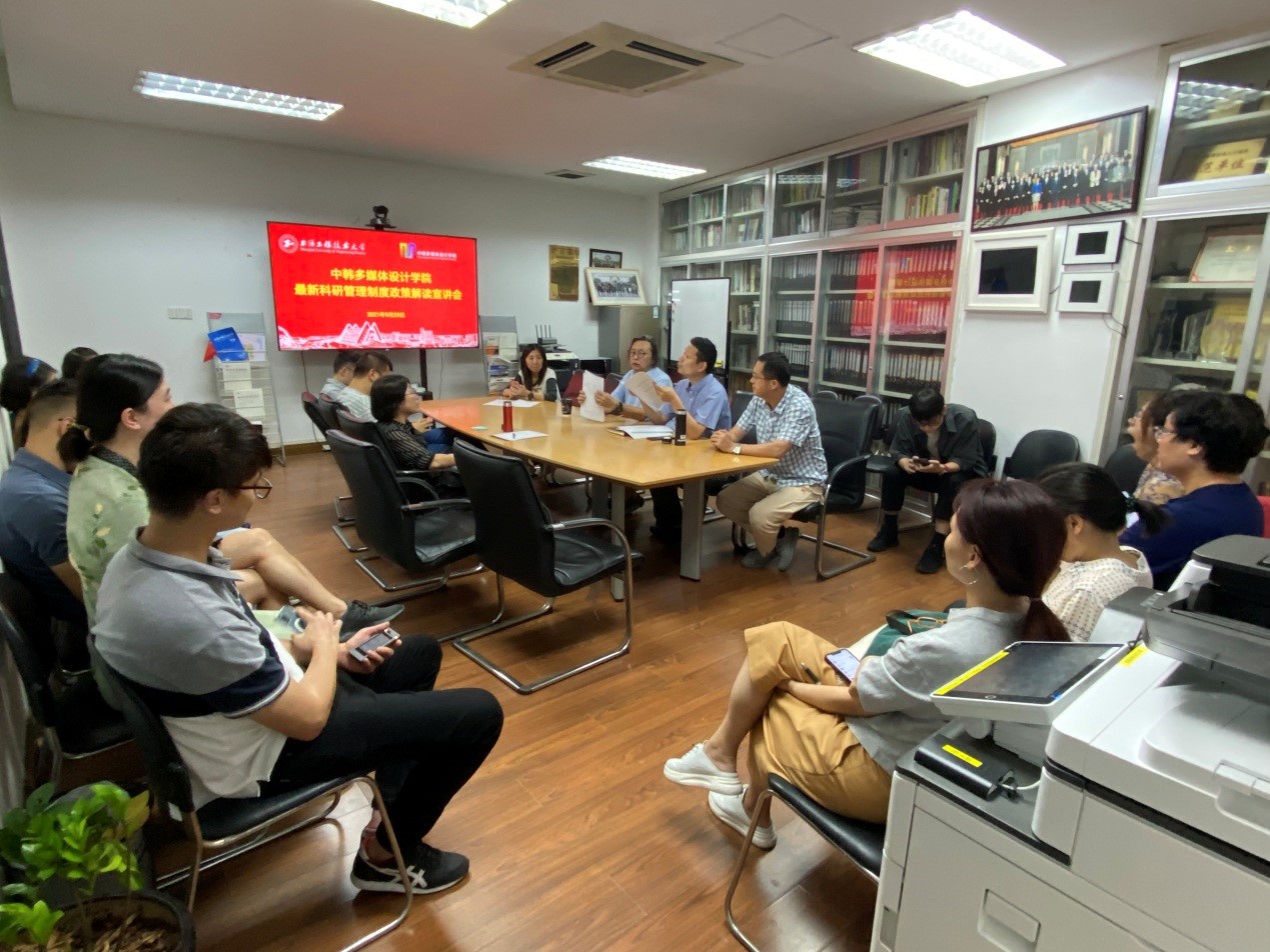9月29日,中韩多媒体设计学院召开了“最新科研管理制度政策解读宣讲会”,会议由学院马建立副书记主持,吴亚生院长、顾艺副院长以及中韩多媒体设计学院全体中方教师出席了会议。