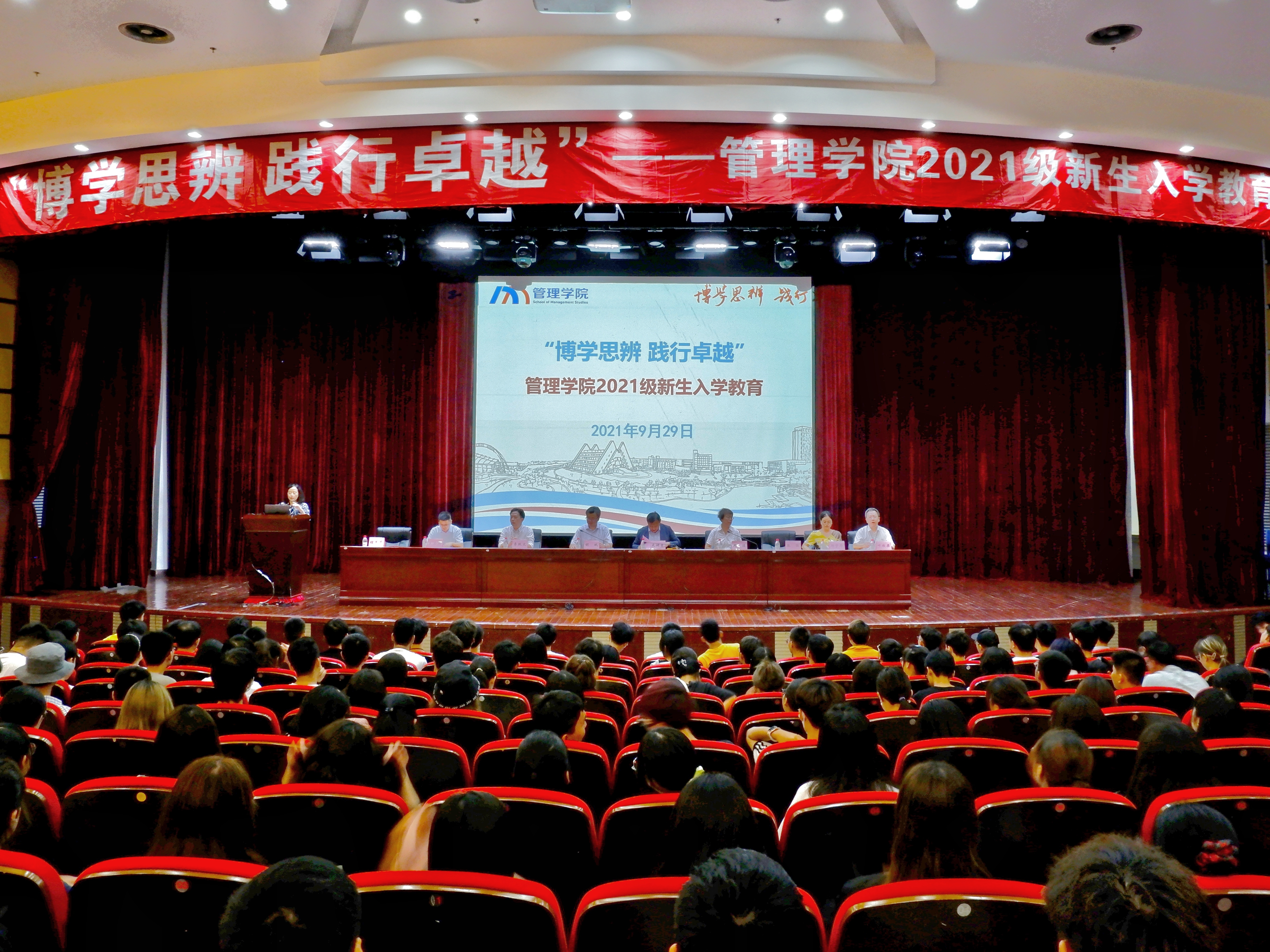 9月29日,管理学院2021级新生入学教育在志宏堂、第二报告厅举行。校党委副书记史健勇,管理学院党委书记周洁,院党委副书记、院长胡斌,院党委副书记张强,副院长李跃文、邱梦华、夏志杰、叶欣梁,全体本科生辅导员,2021级本科新生、预科新生参加学习。会议由管理学院党委副书记程玉莲主持。
