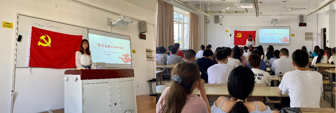 学生党员张丽红为大家介绍了党员发展工作的全流程,主要从入党的基本条件、党员发展的工作流程和入党申请书的撰写和提交三个方面展开讲解,重点介绍了发展党员的具体步骤和流程,强调了端正入党动机的重要性,最后为新生群体介绍了入党申请书的撰写格式和内容,并鼓励同学们以为人民服务为宗旨,积极加入党组织。