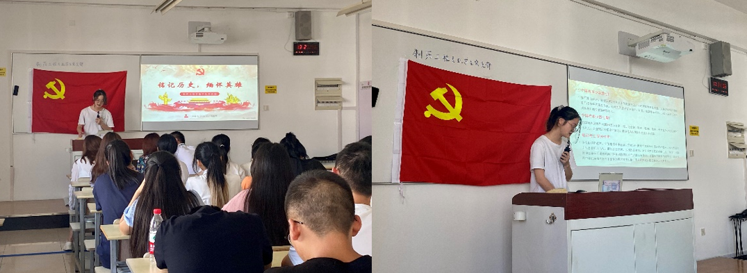 学生党员倪懿凤将新生入党启蒙和烈士纪念日、国庆日党史学习教育相结合,通过漫画和视频的形式向大家再现了1949年建国和1950年开始的抗美援朝战争,通过学习历史,缅怀先烈,鼓励新时代的青年适应时代发展的要求,正确认识祖国的历史和现实,增强爱国的情感和振兴祖国的责任感,树立民族自尊心与自信心,弘扬伟大的中华民族精神,高举爱国旗帜,锐意进取,自强不息,艰苦奋斗,顽强拼搏,真正把爱国之志变成报国之行。