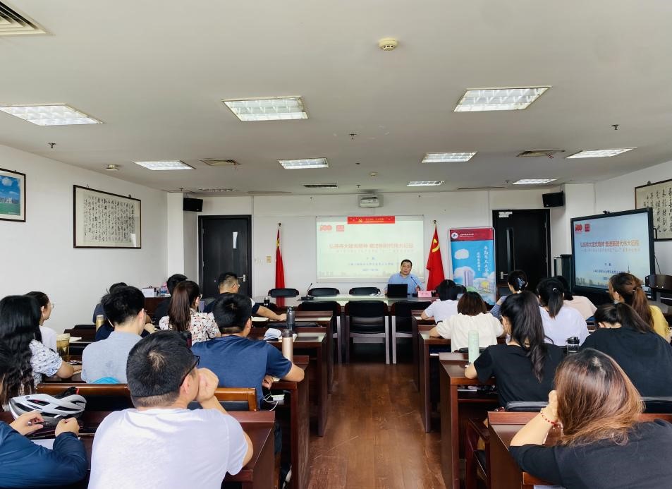 10月6日下午,马克思主义学院副院长于凯教授在行政楼1112会议室,为学院2021级全体研究生讲授题为“弘扬伟大建党精神 奋进新时代伟大征程”的专题党课。