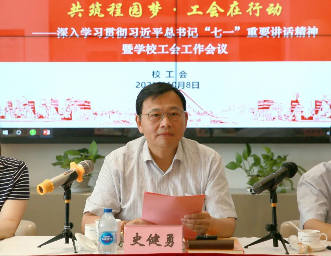 校党委副书记、工会主席史健勇对工会上半年工作取得的成绩给予了充分肯定,并代表学校党委和工会向一直以来辛苦工作的各二级部门工会主席表示感谢。为进一步做好工会工作,他指出,广大工会干部要聚焦坚持党的统一领导,推动党史学习教育在广大教职工中落地生根,要深入开展有特色、接地气、入人心的“我为群众办实事”实践活动,将党史学习教育成果转化为干事创业的工作成效,要切实加强对教职工的思想政治引领,把学校党委的路线方针政策和决策部署落实到工会各项工作中。他强调,校院二级工会和广大工会干部要凝心聚力汇聚教职工智慧与力量,建功学校奋进“十四五”新征程,要充分发挥工会育人职能,落实立德树人根本任务,要深刻学习领会全国劳模大会特别是习近平总书记重要讲话精神,大力弘扬劳模精神、劳动精神、工匠精神,做到点亮一盏灯,照亮一大片。同时,他希望广大工会干部要开拓创新、接续奋斗,持续深化工会内部放管服改革,切实加强自身建设,把今年工作收好尾,明年工作谋好篇,为学校事业的发展做出新的更大的贡献。
