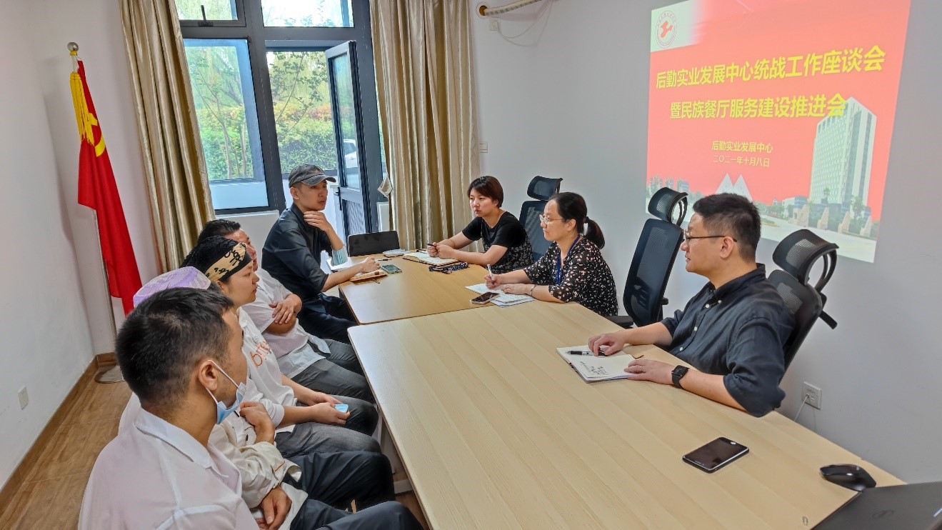 为进一步增强服务师生意识,规范学校民族餐厅管理,推进民族团结工作,10月8日下午,后勤实业发展中心在后勤综合楼113会议室召开了统战工作座谈会暨民族餐厅服务建设推进会,后勤实业发展中心党总支书记熊筱晶,后勤实业发展中心主任、党总支统战委员王佳杰及学校民族餐厅员工代表出席了会议。