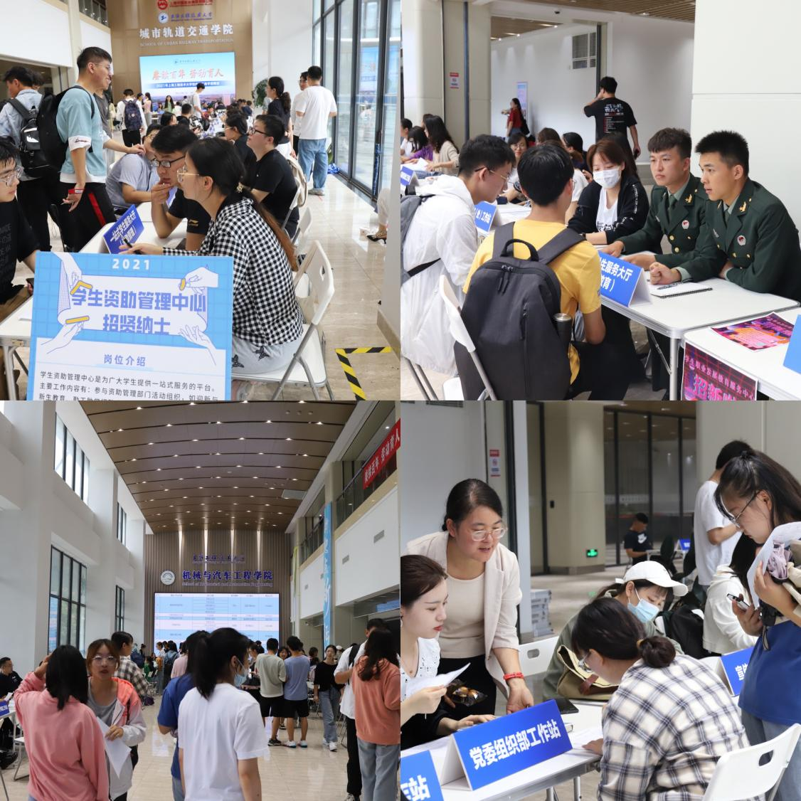 为切实提升勤工助学工作的质量与实效,进一步规范管理校内学生勤工助学活动,促进勤工助学工作健康、有序开展,同时,加强新时代大学生劳动教育,引导大学生在成长过程中树立劳动最光荣、劳动最崇高、劳动最伟大、劳动最美丽的信念。10月13日中午,学校2021年校内勤工助学招聘会在现代交通工程中心一楼大厅举行,校党委副书记、副校长朱晓青亲临招聘会现场,了解各部门用工情况,并与学生亲切交流,解答学生疑问。学生工作部(处)、研究生工作部部长朱蓓,副部长梅元媛出席活动。