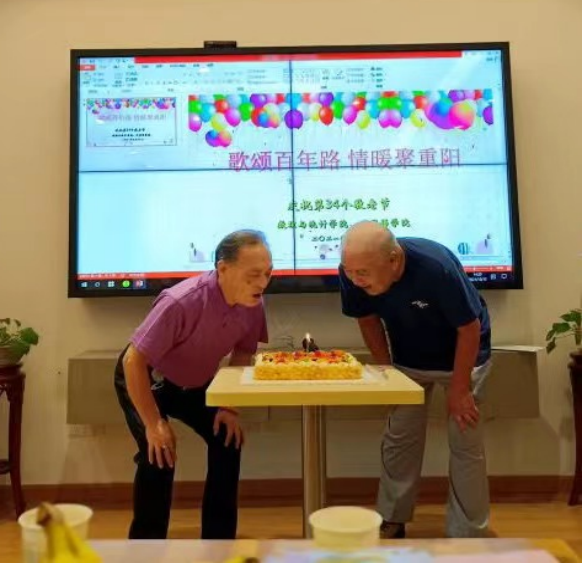 学院为十月份过生日的老教师专门策划了生日会,徐云和汪启新两位老寿星在“祝你生日快乐……”的祝福歌声中许下“祝愿国家繁荣富强、学校蓬勃发展”的心愿,现场的老教师们一起沉浸在幸福的氛围之中。