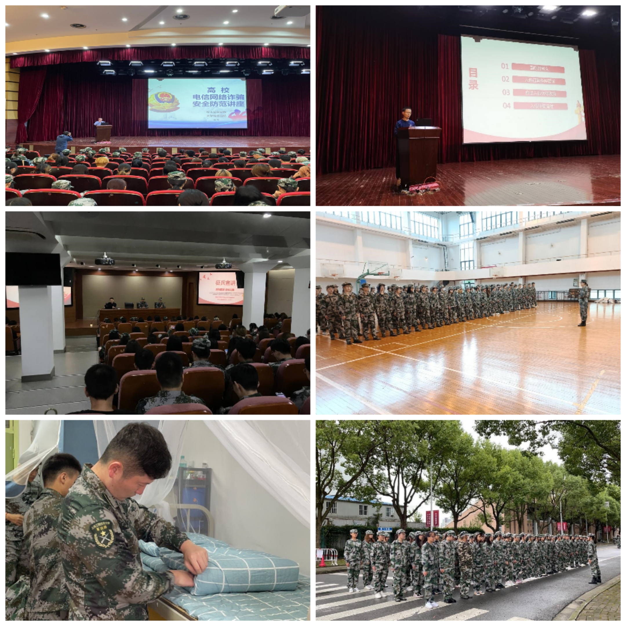 下午学院共开展了安全教育和征兵宣讲两场讲座。学院特邀大学城派出所钮军警官做安全教育专题讲座,钮警官从在大学生中经常遇到的诈骗案例讲起,告知同学们哪些是常见诈骗电话、短信、微信,以及防诈骗的注意事项,最后提醒同学们要提高警惕,学会保护自己,并且要遵守法律法规。通过钮警官的讲解,同学们的防范意识明显提高,并及时下载了国家反诈中心APP。第二场讲座由带训辅导员唐全和李永贺老师宣讲,他们以2021年上海市征兵宣传视频为开头,从国防的意义、入伍征集条件要求、应征入伍优待政策、入伍征集流程四个方面做了征兵动员,震撼的宣传视频及学生中的优秀服兵役案例燃起了同学们当兵入伍的熊熊之火。