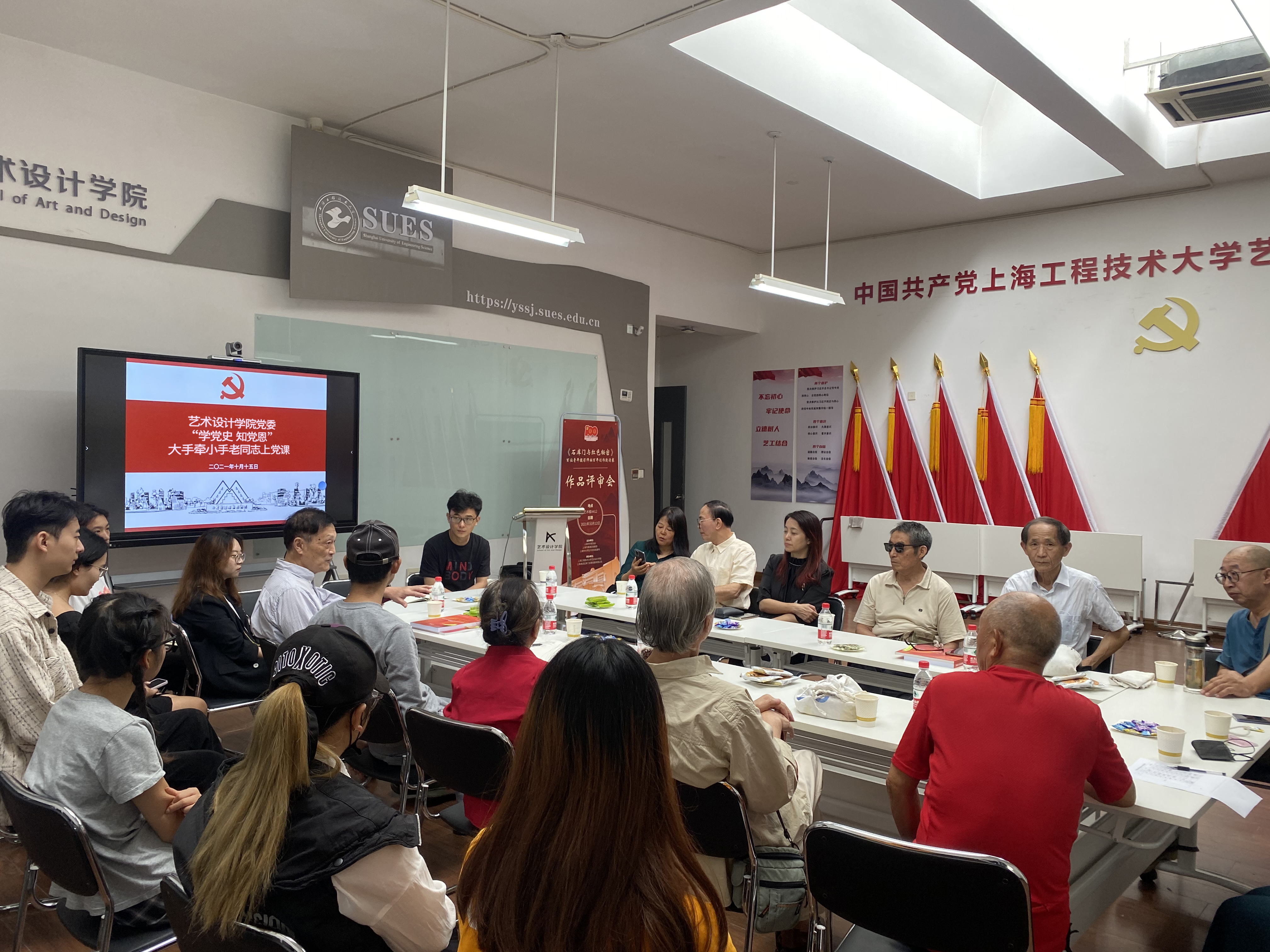 在庆祝中华人民共和国成立72周年、建党100周年之际,在深入开展党史学习教育期间,10月15日上午,艺术设计学院党委在艺术楼A412会议室邀请关工委老同志开展学习“七一”重要讲话精神座谈会,艺术设计学院党委关工委老同志、党支部书记、青年党员出席了会议,会议由艺术设计学院党委书记袁蓉主持。