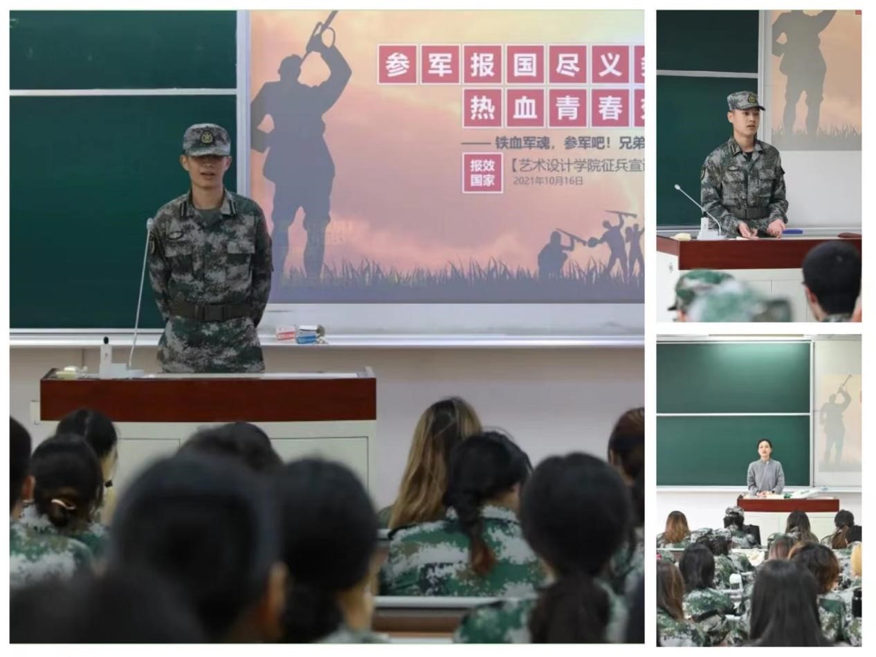 10月16日下午,各专业辅导员和教官在教学楼开展了征兵宣讲和线下军训动员会。一方面,辅导员老师给同学们强调了体温填报工作的重要性,对征兵政策和征兵流程做了详细的宣讲。另一方面,为进一步增强学生参军入伍的热情,强化学生保家卫国的责任感,教官向同学们分享了自己的军旅生活,生动形象地展示了军营的另一面,着重强调了军人对于国家和人民群众的意义,以及军人无畏牺牲、敢于冲锋的精神,呼吁同学们积极参军入伍,在军营中绽放青春,报效祖国。