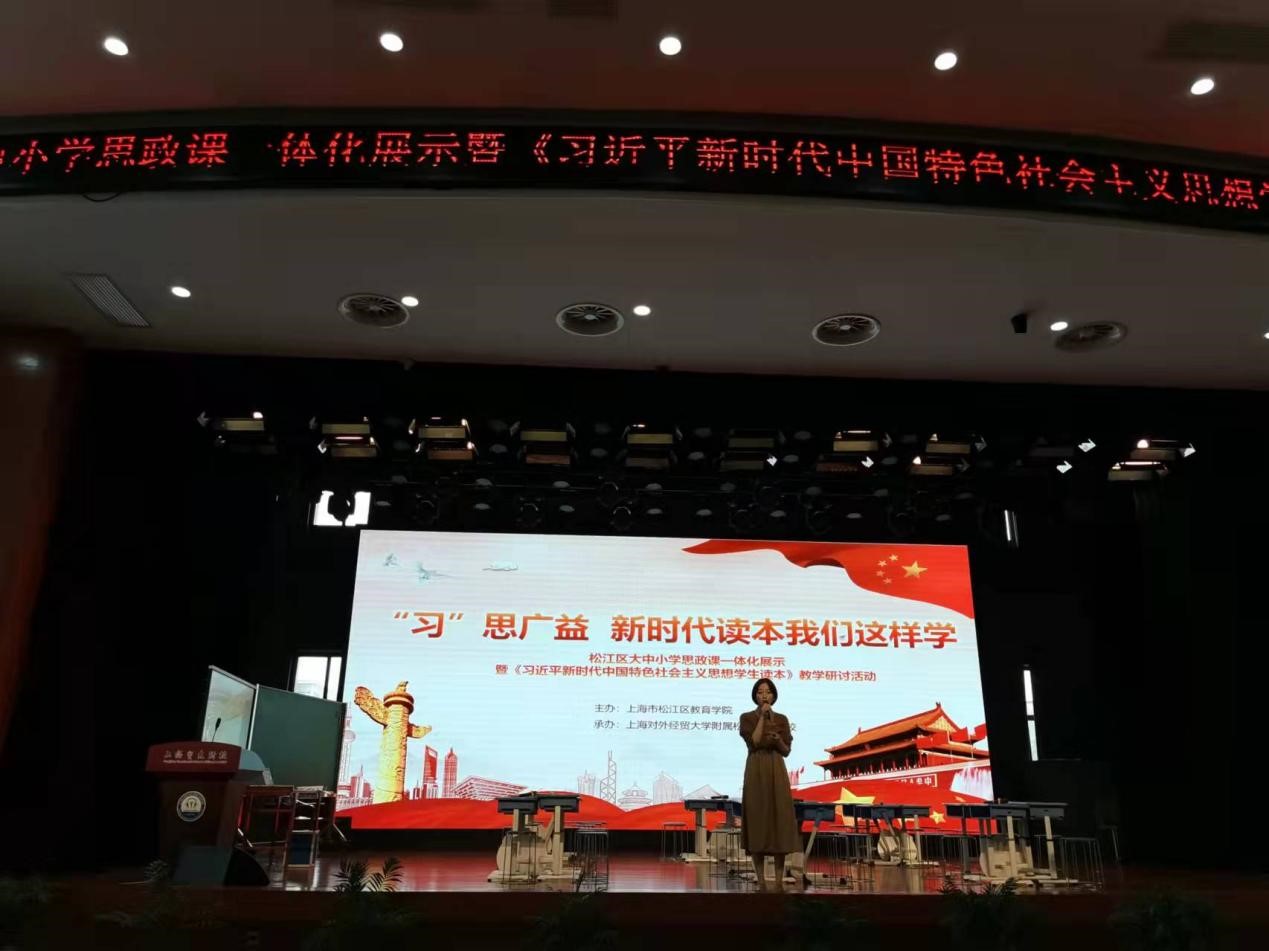 为深入推动习近平新时代中国特色社会主义思想进教材、进课堂、进头脑,增强学习的系统性、实效性, 10月21日下午,马克思主义学院思想政治教育教研室教师马可、张毅,中国特色社会主义理论教研室教师刘隽、孙珊代表学院前往上海对外经贸大学附属实验学校,参加松江区大中小学思政课一体化展示暨《习近平新时代中国特色社会主义思想学生读本》教学研讨活动并开展集体备课活动。