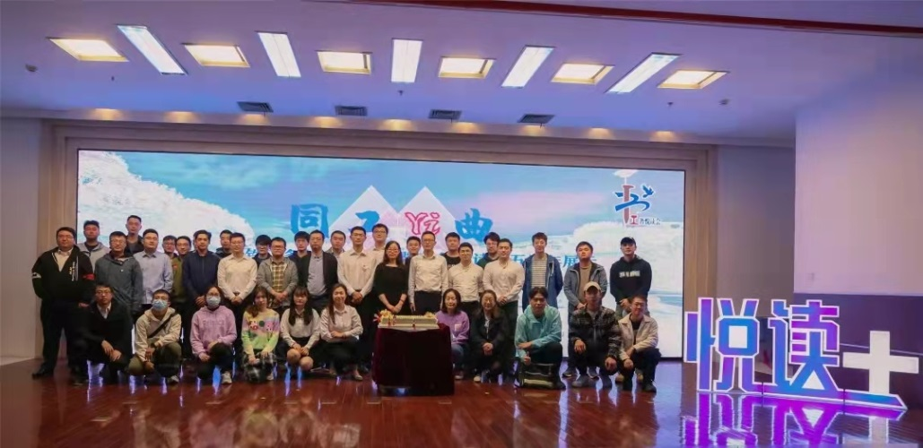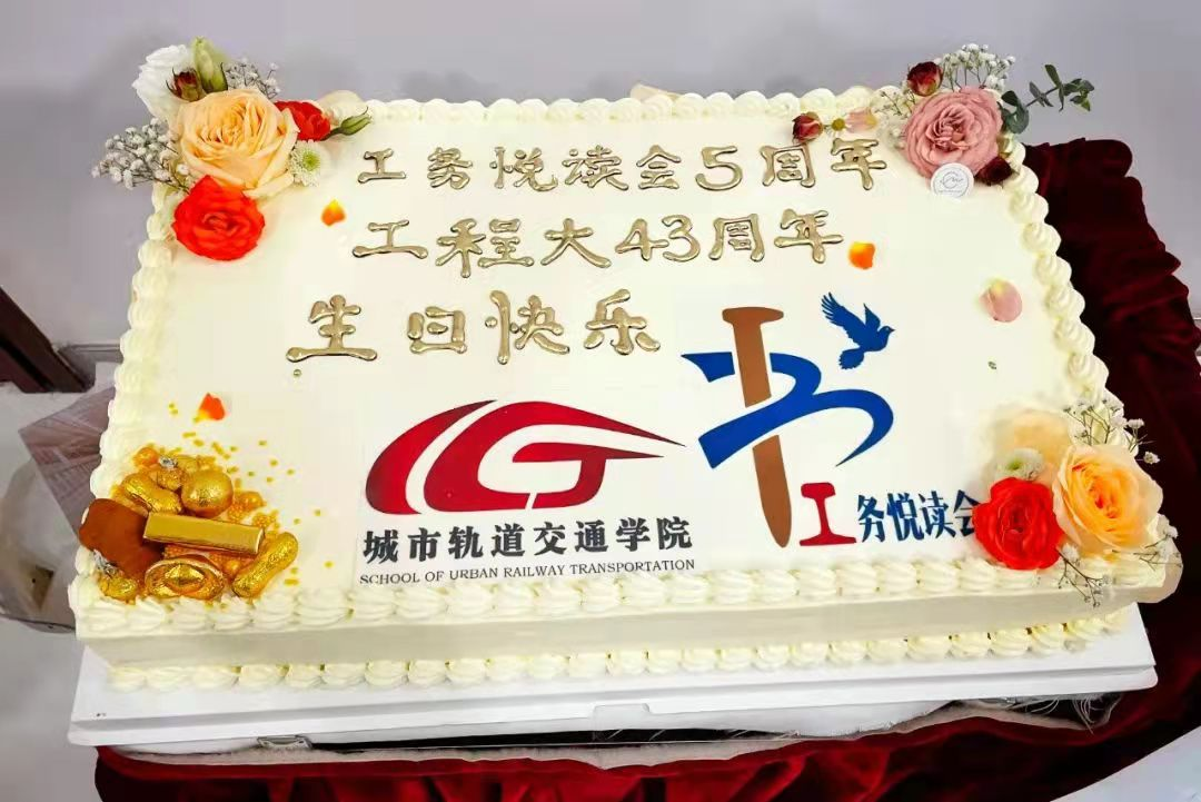 活动最后,校企双方领导共同上台,为即将到来的工程大43周年校庆和悦读会5周年庆生,并合影留念。