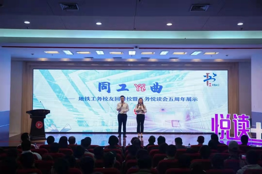 在43周年校庆之际,10月22日,由城市轨道交通学院和上海地铁维护保障有限公司工务分公司联合举办的主题为“同工Yi曲--地铁工务校友回母校暨工务悦读会五周年展示”在图文信息中心第二报告厅举行。城市轨道交通学院刘志钢院长、柴晓冬教授,上海地铁维护保障有限公司工会主席赵天虹、维保工务公司党委书记张俊、总经理孙敏捷,学院党委副书记盛知恒、副院长何越磊和维保公司党建工作部主任何俊、团委书记董秋伟,以及来自维保工务公司各职能部门负责人和我院铁道工程专业师生代表、校友代表等230余人参加了此次活动。本次活动由申通地铁工务分公司、我院交通工程专业2009届校友吴蕴祺和卫追共同主持。