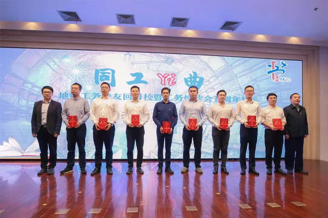 城市轨道交通学院教授柴晓冬、党委副书记盛知恒为优秀校友颁奖,同时颁发党员校友导师聘书。