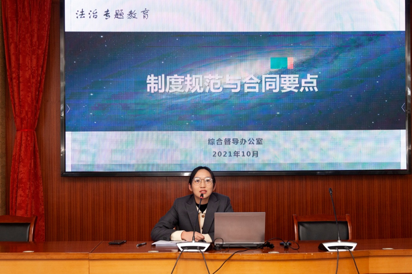 为深入学习贯彻习近平总书记在党史学习教育动员大会上的重要讲话精神,全面落实校党委关于党史学习教育工作部署与要求,根据高职学院、高级技校党史学习教育读书班及纪检队伍职业素养与履职能力提升等相关培训工作内容安排,10月25日,高职学院、高级技校纪委在综合楼9楼第二报告厅组织全体中层干部、纪委委员、党支部纪检委员及资产管理科相关工作人员,开展党史学习教育之法制专题教育,本次专题教育由院校综合督导(法务)办公室法务陈晨主讲。