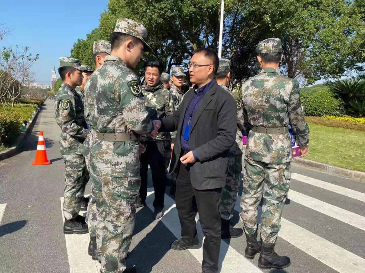 10月23日,航空运输学院(飞行学院)党委书记徐建华、副书记戴振华来到航院军训现场,慰问全体军训教官、带训老师,并亲切询问同学们的训练进度、身体状况以及在训练过程中遇到的问题和困难。结合本次军训,为宣传国家征兵政策,鼓励学生积极参军,落实国防教育工作,航空运输学院(飞行学院)还组织了2021年征兵宣讲活动,进一步激发青年学子积极投身国防建设的热情。