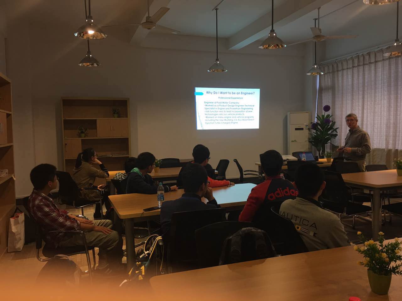 为拓宽我校学生的国际视野,强化学生的英语能力,中美工程学院中美文化交流中心邀请了来自劳伦斯理工大学的Michael Reynolds、Marlene Kler及David Breedlove教授为我校师生作了“与美国外教自由谈”第二期系列讲座。本次系列讲座的主题有:Michael Reynolds:Why Do I Want To Be An Engineer?(我的工程师之路);Marlene Kler:The Value of A Well-Rounded Education(通识教育的价值);David Breedlove:Financial Planning For Grads(毕业生的理财计划)。