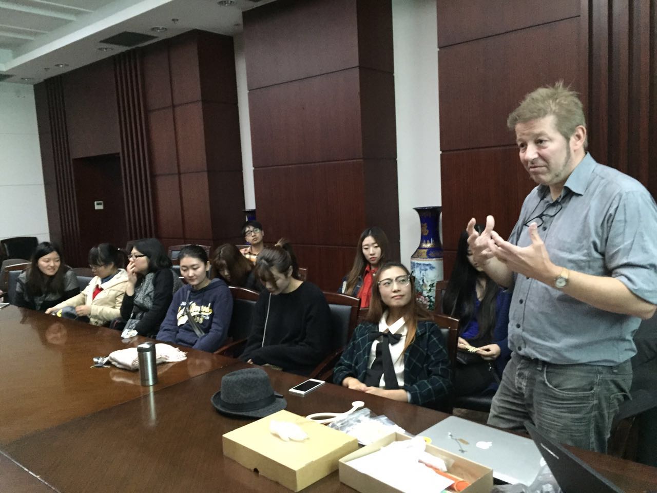 11月10日下午,斯菲尔德哈雷姆大学教授Christoph Zellweger(瑞士)应我校服装学院服装艺术系邀请在我校图文信息中心第五报告厅,作了题为“克拉和卡路里”关于身体、礼仪和规范的艺术探索的精彩讲座,我校兄弟学院及服装学院学生40余人参加了此次讲座。Christoph Zellweger说:“首饰艺术是创作者不断质疑首饰固有的各种属性,以首饰作为表达的手段,从材质、创意、观念、工艺等多个方面不断探索和实践的过程。”此次讲座对首饰的艺术性、挑战传统性的观念进行积研探讨和研究,并鼓励学生在日常的学习中找到自己真正感兴趣的方向,用热忱去坚持去努力,进行更为实验革新的艺术创作,成为具有国际视野的艺术设计工作者。整场讲座同学们反响热烈、积极互动,原定2小时的讲座延长至3小时才在的掌声中结束。通过此次活动同学们对首饰的创作有了全新的认识。为将来的艺术创作实践提供新的方向,受益匪浅。