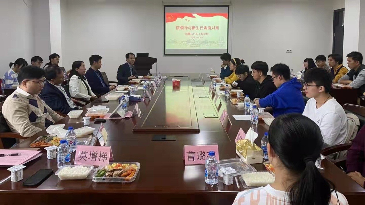 为全面了解新生的所思、所想、所惑,帮助新生适应大学生活。机械与汽车工程学院结合党史学习教育“我为群众办实事”的要求,围绕“立德树人”根本任务,深入推进“三全育人”示范点建设。10月26日中午,机械与汽车工程学院于现代交通中心大楼8B604会议室开展2021级新生代表与学院领导面对面座谈会。学院班子成员、全体新生辅导员、迎新党史知识转盘活动抽选的23名新生代表一同参加会议,会议由学院党委副书记王东阳主持。