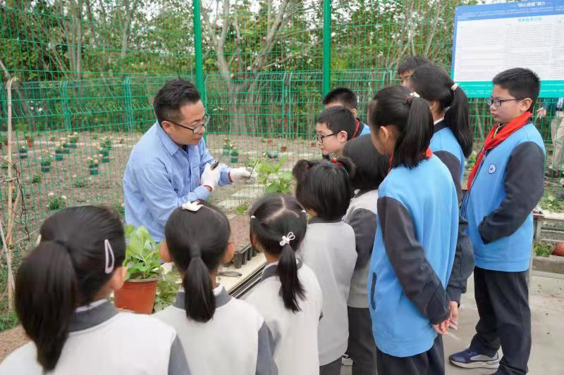 仪式结束后,大中小学生由园林绿化专家指导,在初心苗圃开展了绣球花、月季花、玉簪花等植物种植养护劳动实践。苗圃也将在今后成为面向大中小学生可预约开展劳动教育实践体验的阵地,培植成功的花卉会移栽至校园花境、花坛等处,肥料则由湿垃圾处理装置废物再生。在专人指导的苗圃项目中,大中小学生也将接受到针对不同学段的生态文明特色教育。