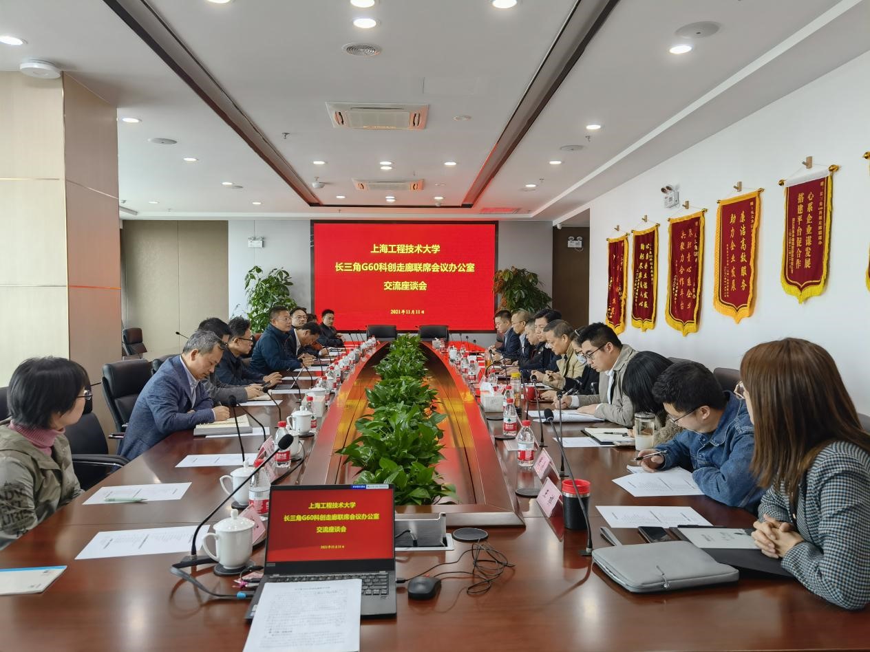 参观结束后,双方召开座谈会。戴志明副主任对参加此次活动的我校人员表示热烈欢迎,他表示,产学研合作一直是G60科创走廊重点推进的工作,联席办作为服务平台,致力于串联起企业和科研机构,实现信息互通、资源共享,推动科创走廊更好服务国家战略任务,实现经济高质量发展。联席办创新研究中心王祺部长进一步从“发展历程”“发展模式”“联动平台”“组织架构”等四个方面详细介绍了长三角G60科创走廊;王厚功科长简要介绍了最新制定的长三角G60科创走廊“十四五”先进制造业协同发展规划。