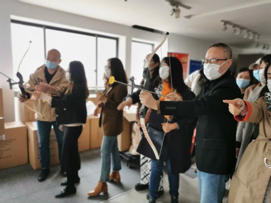 活动中,老师们积极学习弓箭的使用方法,互相交流练习射击的经验心得。老师们脱去厚重的外套轻装上阵,一展身手,命中靶心的老师在大家的欢呼声中还情不自禁地拥抱庆贺。