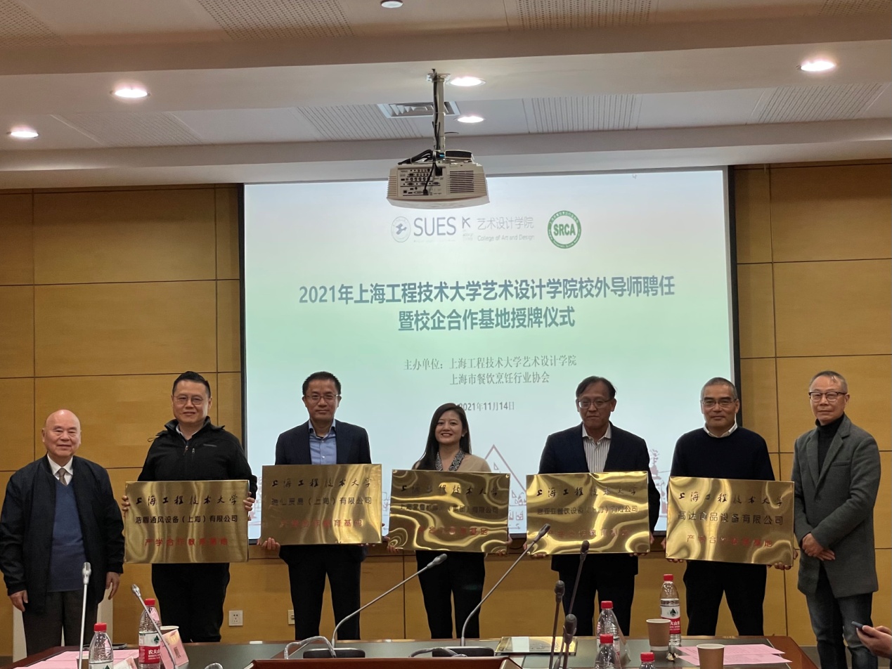 11月14日,由艺术设计学院和上海市餐饮烹饪行业协会共同主办的“2021年上海工程技术大学艺术学院校外导师聘任暨校企合作基地授牌仪式”在上海源深体育中心举办。艺术设计学院院长高瞩、教学副院长刘芹,工业设计系主任徐江华、副系主任康慧;上海市餐饮烹饪行业协会原会长沈思明、副会长曹德华、秘书长沈宏娟及专委会主任杨自然;优异厨房设计顾问公司总经理叶臣光、发利智慧物业服务有限公司创始人李锐、向艺空间设计(上海)有限公司设计总监江侃;上海辅星厨房设计工程有限公司副总经理张志杰、瑞仙贸易(上海)有限公司总经理俞文军、浩盾通风设备(上海)有限公司大中华区总经理陈川翰、高达食品设备有限公司副总经理万明球等出席活动。艺术设计学院副院长刘芹主持活动。