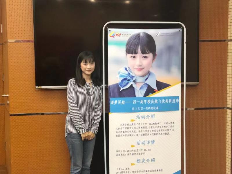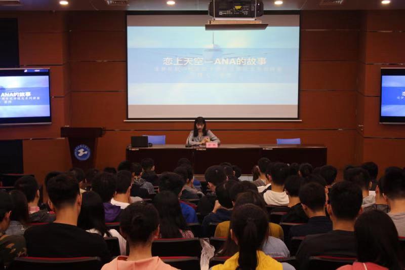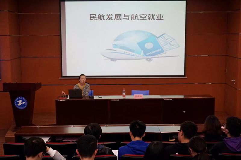 2018年10月23日 17:30,航空运输学院、飞行学院团委在航飞楼一楼学术报告厅举办“逐梦民航”——四十周年校庆航飞优秀校友讲坛季暨领导力培训班第四讲“民航发展与就业”。讲坛邀请到学院2008届毕业生、现任春秋航空股份有限公司乘务长及形象代言人裴茜昀作为主讲人。航空运输学院、飞行学院团委书记林小希及各航空专业师生共同参加此次讲坛。