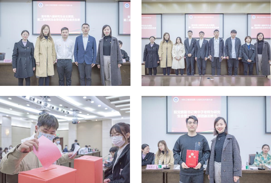 11月18日,材料工程学院第八次研究生代表大会在图文信息中心第三报告厅召开。院党委副书记黄中子、院团委书记石玉枝、研究生辅导员马文婷、校第十届研究生会主席团代表张娣、院第七届研究生会主席沙业雨和全体研究生代表出席了此次大会。本次大会听取了材料工程学院第七届研究生会工作报告,并通过选举产生了第八届研究生会主席团成员及常任委员会。
